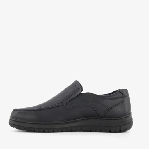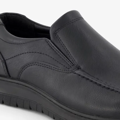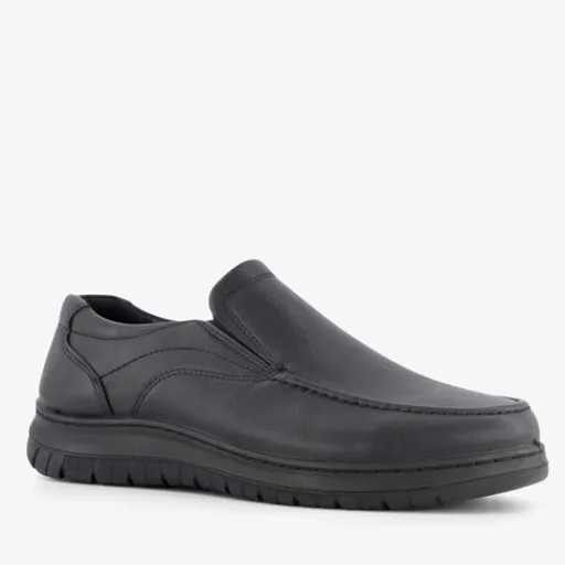 Comfortabele instappers voor heren. Met een boven- en binnenwerk van imitatieleer en een rubberen zool. De instappers hebben elastische inzetten zodat je ze makkelijk aantrekt. Het voetbed is gemaakt van imitatieleer en is uitneembaar zodat je eventueel je eigen zooltjes in de schoenen kunt dragen. De instappers beschikken over een brede leest.