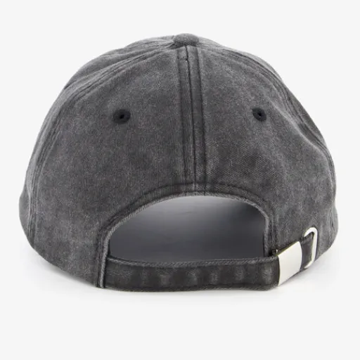 Zwarte pet met witte tekstopdruk voor heren en dames. Voorzien van een verstelbaar bandje aan de achterzijde en gemaakt van katoen.