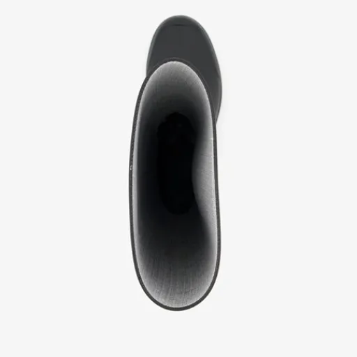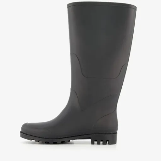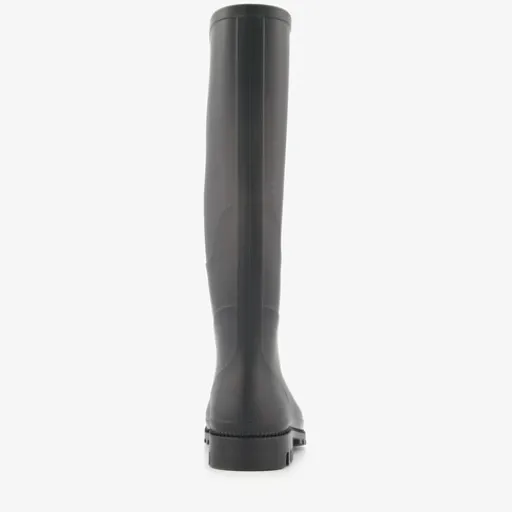 Hoge, zwarte regenlaarzen voor damess. Gemaakt van rubber met een stevige profielzool van rubber. De laarzen zijn waterdicht en hebben een vast voetbed van textiel.