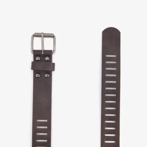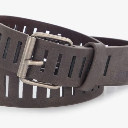 Bruine riem met een zilverkleurige gesp voor jongens. Gemaakt van imitatieleer.