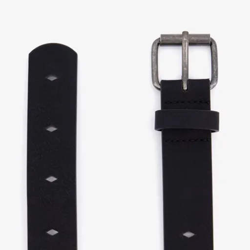 Zwarte riem voor jongens met zilverkleurige gesp. De riem is gemaakt van imitatieleer.