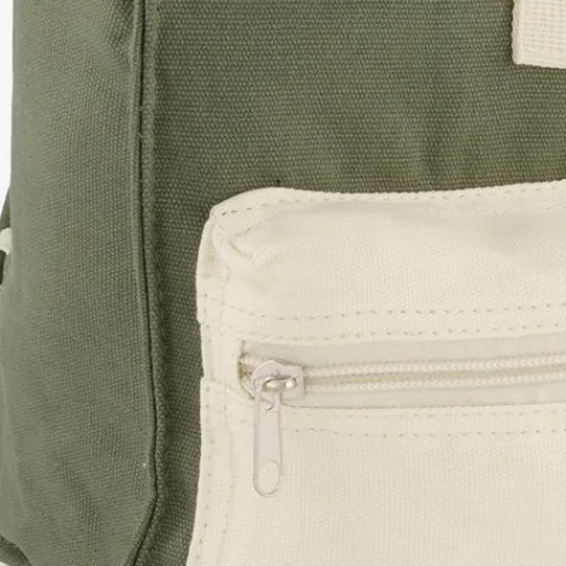 Groen/witte rugzak voor kinderen. Voorzien van een ruime hoofdvak die oprolbaar is en die afgesloten kan worden doormiddel van een kliksluiting. De tas heft een voorvakje met ritssluiting, een draaglus aan de bovenzijde en verstelbare schouderbanden. Gemaakt van polyester. Afmetingen: 12 x 20 x 36 cm. Inhoud is 9 liter.