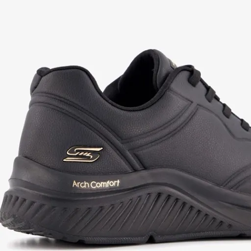 Zwarte Skechers BOBS Arch Comfort B Sweet A Bind sneakers voor dames. Het buitenwerk is gemaakt van imitatieleer, het binnenwerk van textiel en de flexibele buitenzool met profiel van rubber. De sneakers bieden ondersteuning, demping en veel comfort dankzij de Skechers Arch Comfort® Arch zool en de Memory Foam binnenzool. Binnenzool is niet uitneembaar.
