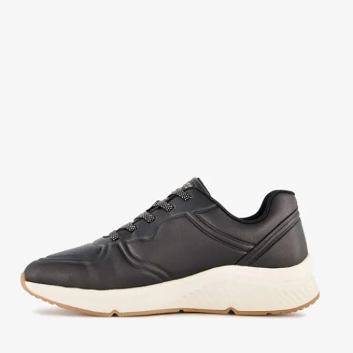 Zwarte Skechers BOBS Arch Comfort B Sweet A Bind sneakers voor dames. Het buitenwerk is gemaakt van imitatieleer, het binnenwerk van textiel en de flexibele, witte buitenzool met profiel van rubber. De sneakers bieden ondersteuning, demping en veel comfort dankzij de Skechers Arch Comfort® Arch zool en de Memory Foam binnenzool. Binnenzool is uitneembaar zodat je eventueel jouw eigen zolen in de schoenen kan dragen.