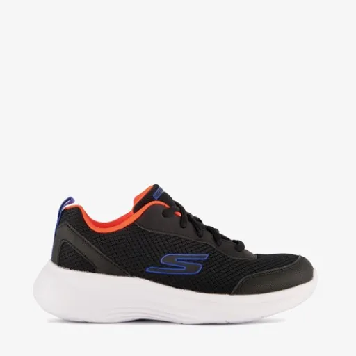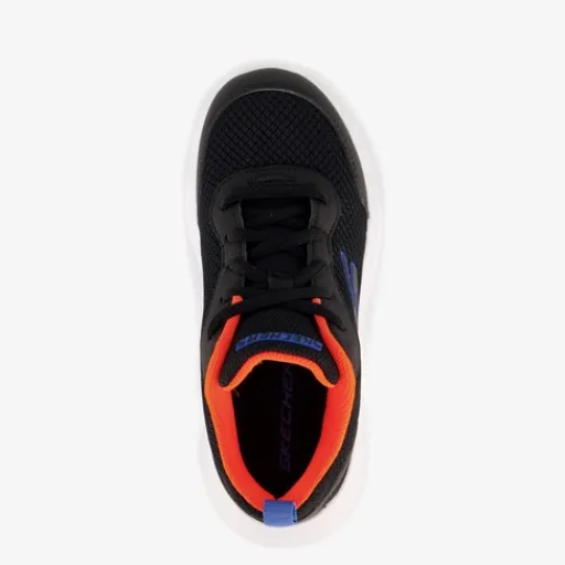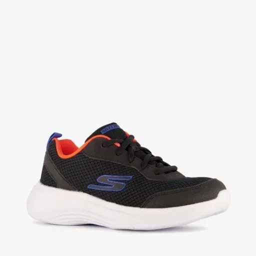 Zwarte Skechers Boys Selectors jongens sneakers. Gemaakt van mesh, een binnenwerk van textiel en een rubberen zool. De sneakers hebben een vetersluiting en vast voetbed van textiel. De sneakers hebben blauwe en oranje details.