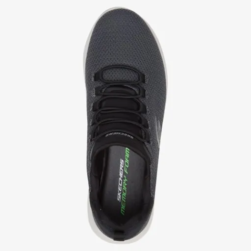 Zwarte Skechers Dynamight sneakers voor heren. Het buiten- en binnenwerk zijn gemaakt van textiel en de stevige zool met profiel van rubber. De sneakers hebben elastische veters en een aantreklusje op de hak voor een makkelijke instap. Het vaste voetbed is gemaakt van textiel en bevat Memory Foam voor optimaal comfort. Voorzien van ademend mesh op het bovenwerk en merkopdrukken op de tong en buitenzijde. De Skechers sneakers hebben een flexibele buitenzool die grip en demping biedt.