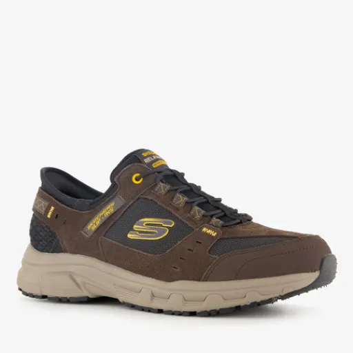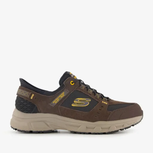 Bruine Skechers Slip-ins RF: Oak Canyon wandelschoenen voor heren. Het bovenwerk is gemaakt van mesh en imitatieleer, het binnenwerk is van textiel en de stevige zool met profiel is van rubber. Voorzien van elastische veters zodat je de schoenen moeiteloos en handsfree aan en uit kan trekken. Deze gevoerde wandelschoenen bieden demping en comfort dankzij de uitneembare Air Cooled Memory Foam binnenzool. Categorie A wandelschoenen zijn laag van model, soepel en licht. Ze zijn geschikt om te wandelen op verhard of licht onverhard terrein. Deze comfortabele wandelschoenen kun je gebruiken tijdens het wandelen van een vierdaagse of tijdens een wandeling door het bos of op het strand.