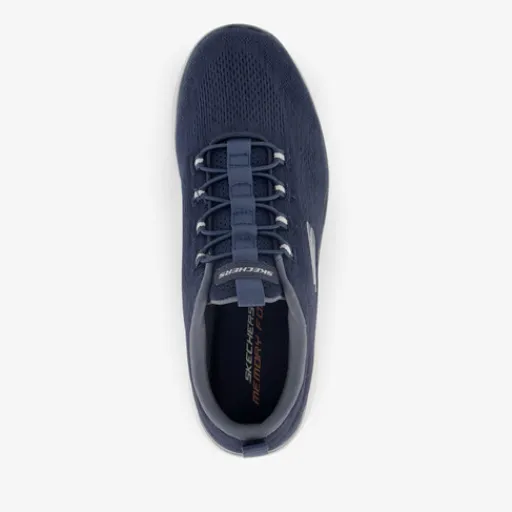 Blauwe Skechers Summits sneakers voor heren. Gemaakt van textiel, een binnenwerk van textiel en een stevige profielzool. De sneakers hebben elastische veters en aantreklusjes op de hak en tong voor een makkelijke instap. Het vaste voetbed is gemaakt van textiel. Deze bevat Memory Foam voor optimaal comfort. De Skechers sneakers hebben een ademend bovenwerk van mesh en een lichtgewicht buitenzool die extra demping biedt.
