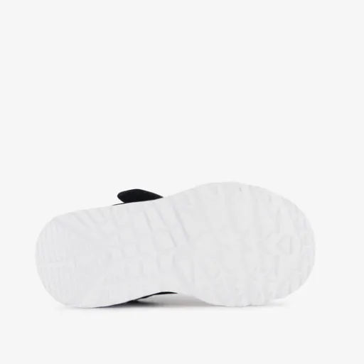 Zwarte Skechers Uno Lite sneakers voor meisjes. Het buitenwerk en het binnenwerk zijn gemaakt van textiel en de stevige zool met profiel is van rubber. Voorzien van elastische vetes en een klittenbandsluiting voor een optimale pasvorm en een comfortabele binnenzool van Air-Cooled Memory Foam. Deze is niet uitneembaar. De sneakers hebben roze details en een dikke, witte buitenzool die lekker opvalt en demping biedt.