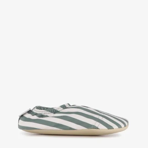 Witte slipstop kinder schoenen met groene strepen. Het ademende buitenwerk van de schoenen is gemaakt van 87% polyester en 13% elastaan. De zool bestaat uit 84% PVC, 8% katoen en 8% elastaan. Slipstop schoenen houden de voeten van je kind schoon en droog. De schoentjes zijn licht, elastisch, flexibel, waterafstotend en hebben een profielzool. Ze kunnen zowel binnen als buiten gedragen worden. Dit maakt ze ideaal voor bij het zwembad en op het strand, maar ook heel handig om mee te geven naar de kinderopvang of mee te nemen naar de camping. Slipstop schoenen zijn daarnaast ook erg geschikt voor oudere kinderen en zelfs volwassenen. Ze kunnen gedragen worden tijdens het beoefenen van verschillende sporten en activiteiten.
