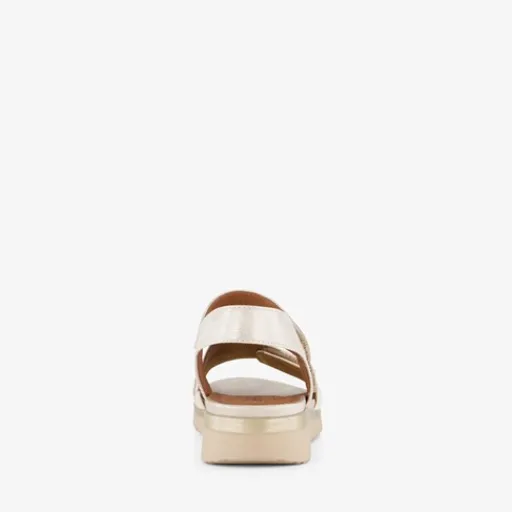 Goudkleurige sandalen voor dames van Softline. Met een boven- en binnenwerk van imitatieleer en een rubberen zool. De sandalen hebben drie klittenbandsluitingen voor een optimale pasvorm. Het vaste voetbed is gemaakt van imitatieleer. De sandalen zijn wijd en hierdoor geschikt voor brede(re) voeten. Voorzien van een lage sleehak van circa 3,5 cm.