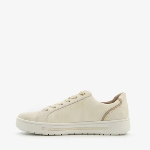 Goudkleurige sneakers voor dames uit de Softline collectie. Gemaakt van imitatieleer, een binnenwerk van textiel en een rubberen zool. De sneakers hebben een rits- en vetersluiting voor een makkelijke instap. Het vaste voetbed is gemaakt van imitatieleer. De sneakers beschikken over een wijde pasvorm en zijn hierdoor geschikt voor brede(re) voeten.