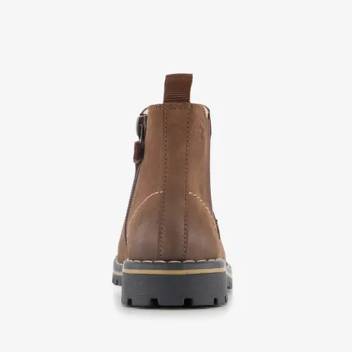 Bruine Chelsea boots voor jongens van Stap. Het buiten- en binnenwerk zijn van leer gemaakt en de buitenzool met profiel is van rubber. De comfortabele binnenzool is van leer en is niet uitneembaar. Voorzien van een ritssluiting aan de binnenzijde en een elastische inzet aan de buitenzijde. De boots hebben een aantreklusje aan de achterkant, een lage hak en een schachthoogte van circa 9 cm. Deze schoenen met het Stap-keurmerk voldoen aan de volgende kwaliteitseisen: ademend leer, een buigzame zool voor een goede voetafwikkeling, een leren voetbed, een perfecte pasvorm en een verstevigde hiel voor stabiliteit en een gezonde loophouding. De schoenen zijn goedgekeurd door orthopedisch chirurg Dr. Visser.