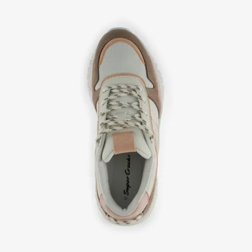 Supercracks Dames dad sneakers beige roze Hot