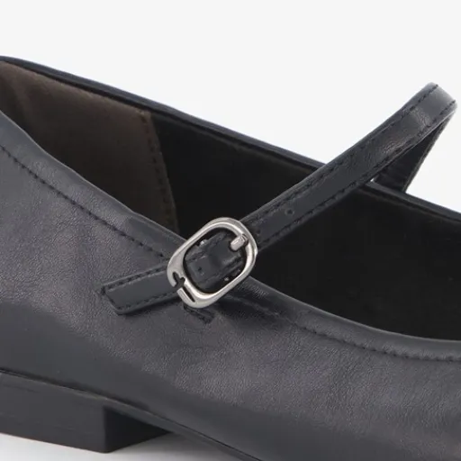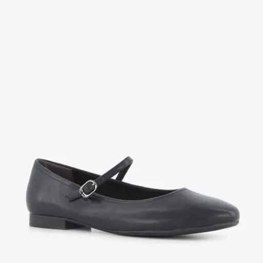 Zwarte ballerina’s voor dames uit de Tamaris collectie. Het buitenwerk is gemaakt van imitatieleer, het binnenwerk van textiel en de buitenzool is van rubber. Deze elegante ballerina’s hebben een dun wreefbandje met gespsluiting en een comfortabele binnenzool van Soft Foam die demping biedt. Binnenzool is niet uitneembaar.