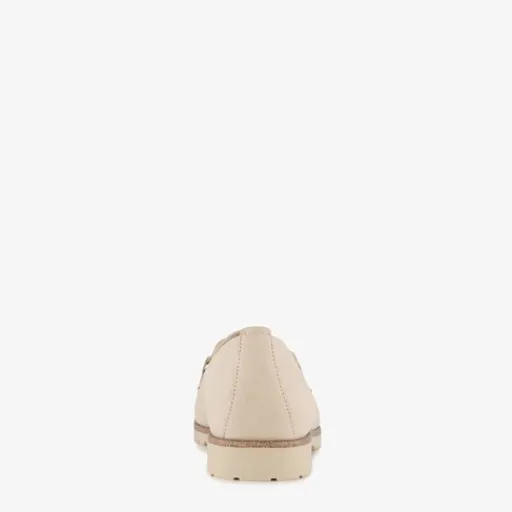 Beige loafers voor dames van Tamaris. Gemaakt van imitatieleer, een binnenwerk van textiel en een rubberen zool. De loafers hebben een elastische instap en comfortabel soft foam voetbed. Deze is niet uitneembaar. Voorzien van decoratie op de neus.