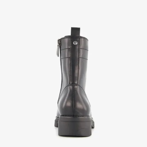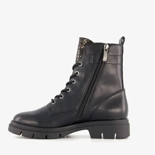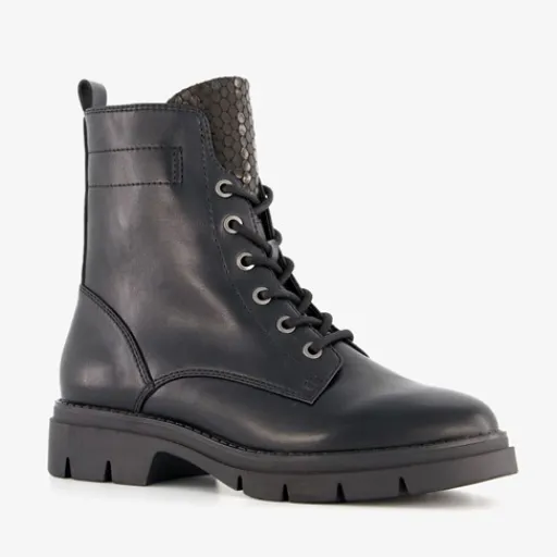 Zwarte veterboots voor dames uit de Tamaris collectie. Gemaakt van imitatieleer met een binnenwerk van textiel en een stevige profielzool van rubber. Voorzien van een vetersluiting, een ritssluiting aan de binnenzijde en hiellusjes. Deze mooie dames boots hebben goudkleurige details op de tong en een comfortabele binnenzool van textiel. Schachthoogte is 16 cm en hakhoogte is 2 cm. Binnenzool is niet uitneembaar.