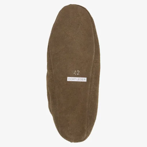 Spaanse sloffen voor heren in de kleur kaki/groen. De pantoffel is vervaardigd van leer en textiel. De binnenkant is voorzien van teddy voering zodat de voeten goed warm blijven. De sloffen zijn comfortabel en lopen soepel. Bovendien is leer ademend voor je voeten en goed te onderhouden. Let op: de sloffen kunnen kleur afgeven op vloerbedekkingen!