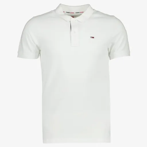 Witte Tommy Hilfiger polo voor heren. Deze klassieke polo heeft een hoge hals met omgeslagen kraagje, 2 knopen op de borst en korte mouwen. Voorzien van het Tommy Hilfiger merklogo en gemaakt van 100% katoen.