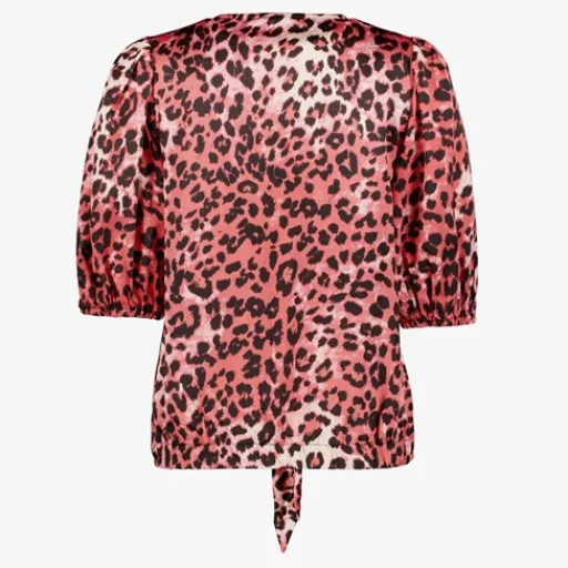 Roze dames blouse met panterprint uit de TwoDay collectie. Voorzien van een V-hals, halflange mouwen en een strik aan de onderzijde. Gemaakt van 100% polyester. Combineer de blouse met de bijpassen broek en maak je outfit compleet!
