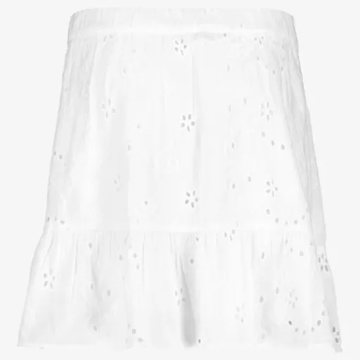 Witte broderie rok voor dames. Voorzien van een elastische tailleband en gemaakt van 100% katoen.
