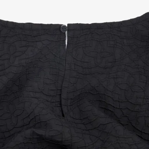 Zwarte dames jurk met korte mouwen uit de TwoDay collectie. Voorzien van een ronde hals en een knoopsluiting aan de achterkant. De jurk heeft een structuur in de stof en is gemaakt van 95% polyester en 5% elastaan.