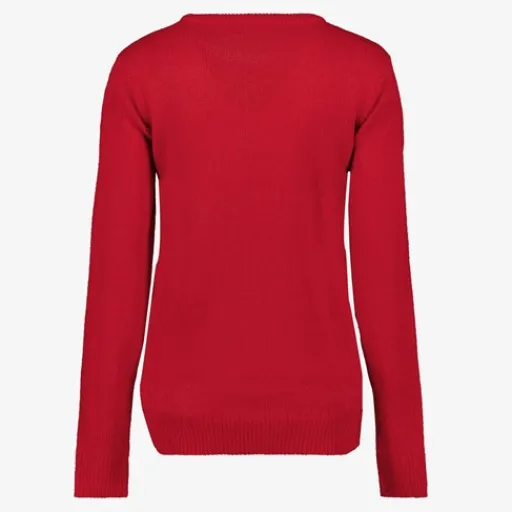 Rode kersttrui met Rudolf het rendiertje voor dames. Voorzien van een ronde hals en lange mouwen. Gemaakt van 100% acryl.