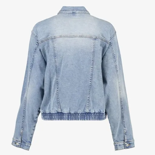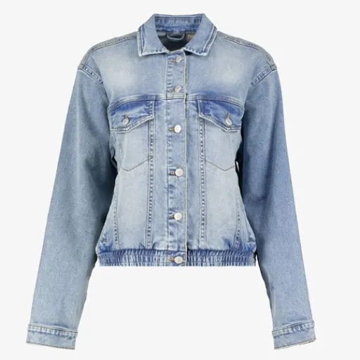 Lichtblauwe spijkerjas voor dames uit de TwoDay collectie. Voorzien van een omgeslagen kraagje, een knoopsluiting aan de voorzijde, twee borstzakken met klepjes en knoopsluiting en twee steekzakken. Deze mooie damesjas heeft een stone washed look en valt oversized. Gemaakt van 64% katoen, 34% polyester en 2% elastaan.