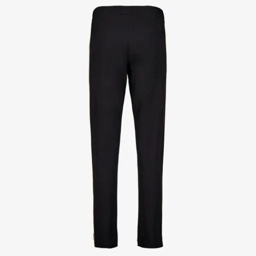 Zwarte pantalonbroek voor dames uit de TwoDay collectie. Voorzien van een elastische tailleband, twee steekzakken en een slimfit pasvorm. De broek heeft beige strepen aan de zijkanten. Gemaakt van 95% polyester en 5% elastaan.