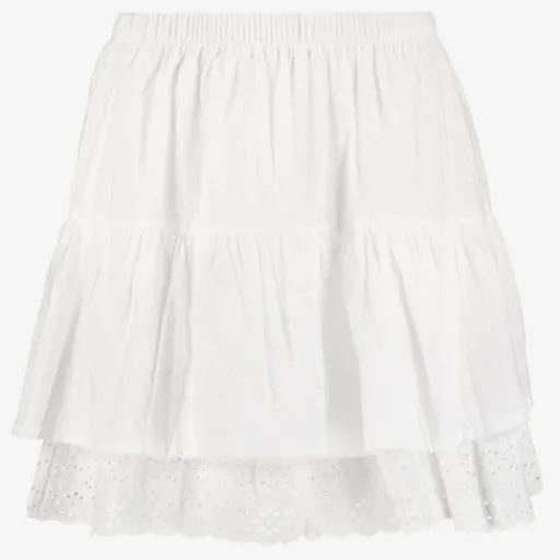 Witte rok voor dames van TwoDay. Voorzien van een elastische tailleband en ruches aan de onderzijde met broderie. Gemaakt van 100% katoen. Combineer de rok met de bijpassende top en maak je outfit compleet!