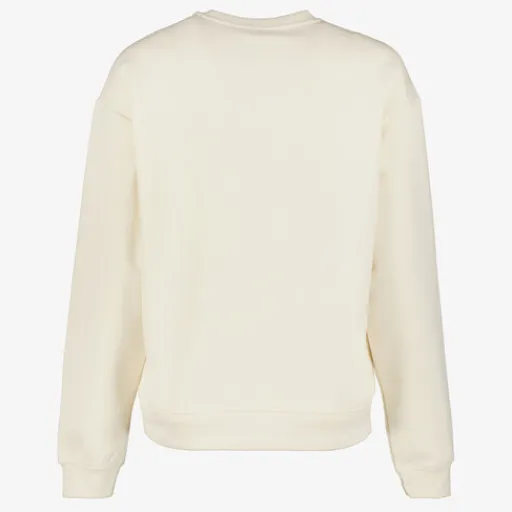 Witte sweater voor dames. Voorzien van een ronde hals, elastische boorden en een tekstopdruk aan de voorzijde. De sweater is gemaakt van 70% katoen en 30% polyester.