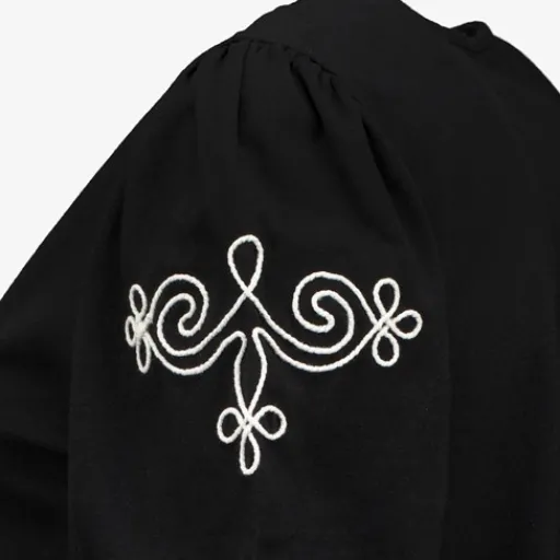 Zwart T-shirt voor dames. Voorzien van een ronde hals en halflange mouwen met geborduurde, witte details. Gemaakt van 95% katoen en 5% elastaan.
