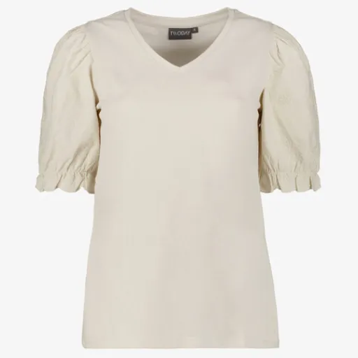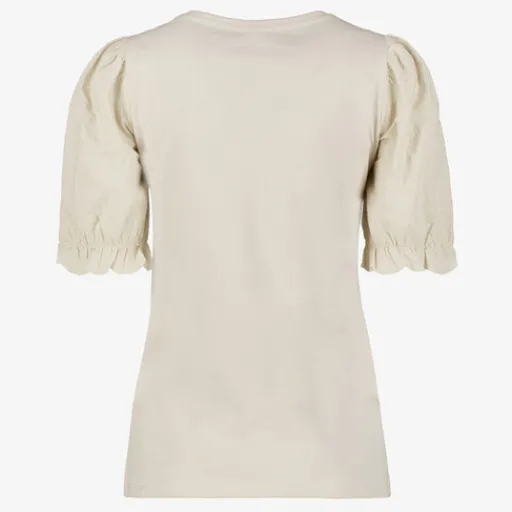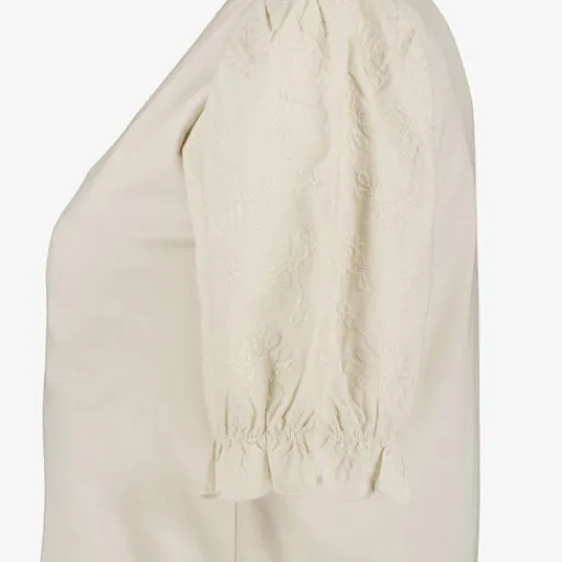 TwoDay Dames T-shirt met geborduurde mouwen beige Online