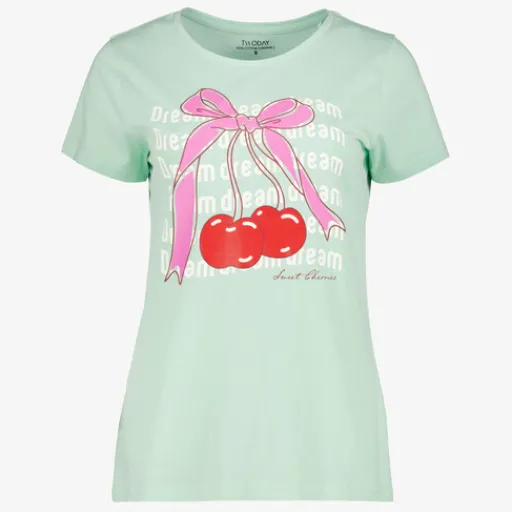 TwoDay Dames T-shirt met kersen mintgroen New