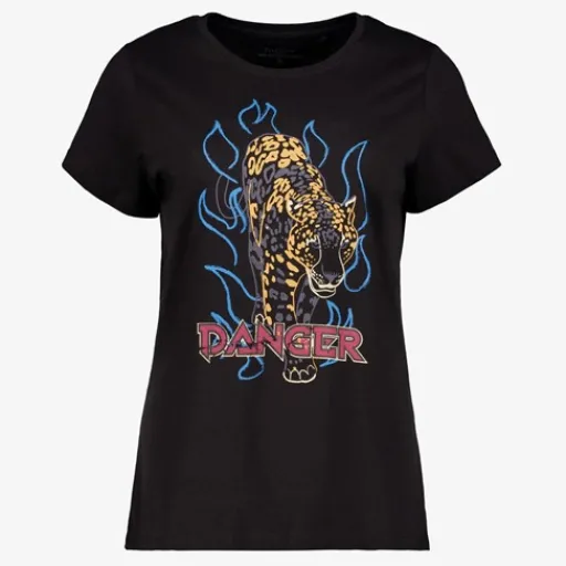 TwoDay Dames T-shirt met luipaard zwart Clearance