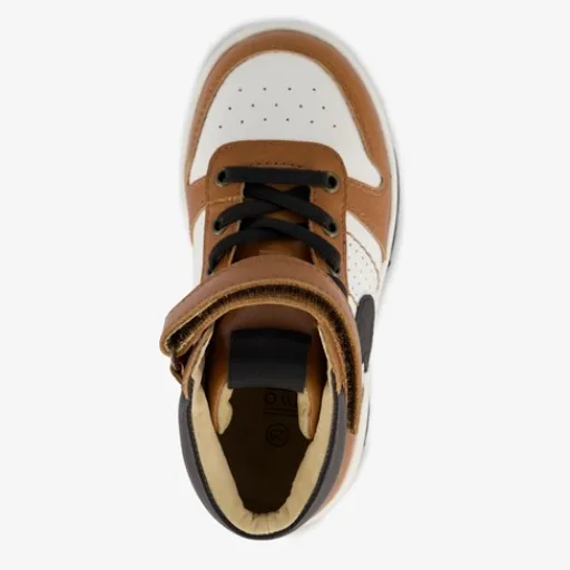 Hoge, cognackleurige sneakers voor jongens van TwoDay. Het buiten- en binnenwerk zijn gemaakt van leer en de stevige zool met profiel van rubber. Voorzien van elastische veters met klittenbandsluiting voor een optimale pasvorm en een comfortabele voetbed van leer. Op het buitenwerk zijn perforatiegaten aangebracht die voor ventilatie zorgen. Deze gave sneakers worden versierd met witte en zwarte details. Binnenzool is niet uitneembaar.