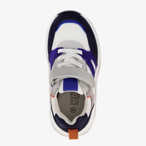 Blauw met witte jongens sneakers van TwoDay. Het buiten- en binnenwerk zijn gemaakt van leer en de stevige zool met profiel is van rubber. Voorzien van elastische veters en een klittenbansluiting voor een optimale pasvorm en hiellusjes voor een makkelijke instap. Het buitenwerk van de sneakers wordt versierd met oranje en grijze accenten. Het comfortabele voetbed van leer is niet uitneembaar. De sneakers zijn gekeurd door Dr. Visser, wat de volgende garanties biedt: goede pasvorm, verstevigde hiel, bovenmateriaal van leer en een buigzame zool.
