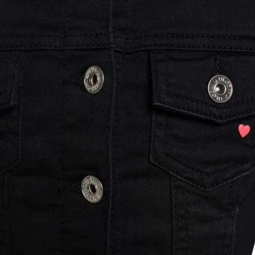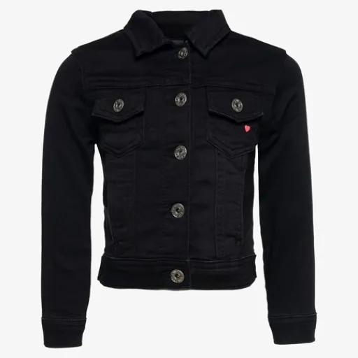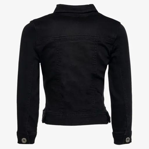 Zwarte spijkerjas voor meisjes uit de TwoDay collectie. Voorzien van knoopsluitingen en een omgeslagen kraagje. De denim jas heeft verstelbare boorden met knoopjes en twee afsluitbare borstzakken. Voorzien van een subtiele wassing. Het spijkerjasje voor meisjes is gemaakt van 75% katoen, 24% polyester en 1% elastaan.