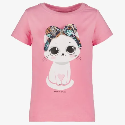 TwoDay Meisjes T-shirt met kat en strik roze