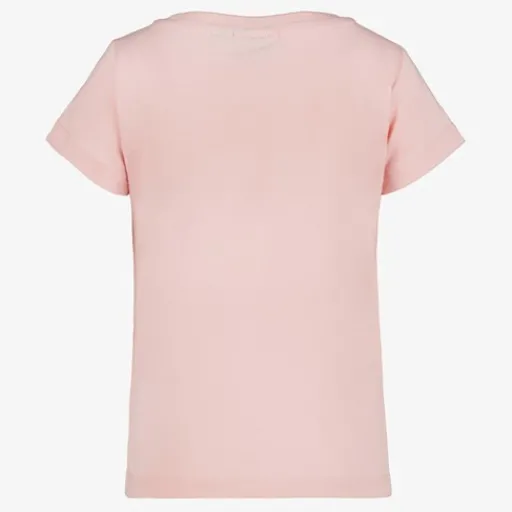 Roze T-shirt voor meisjes van TwoDay. Het shirtje heeft een opdruk van een vogel met bloemen aan de voorzijde en is gemaakt van 100% katoen.