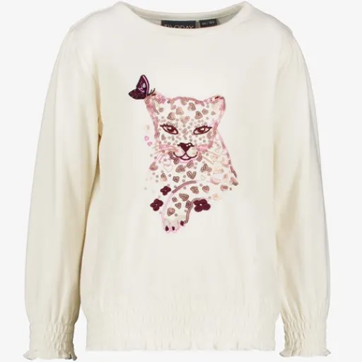 Wit/beige trui van TwoDay voor meisjes. Deze super schattige trui heeft een toffe panteropdruk op de voorzijde. De trui en de mouwen zijn aan de onderkant voorzien van gesmockte details. Dit geeft een geplooid effect. Gemaakt van 100% katoen.
