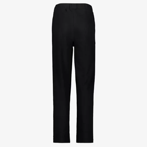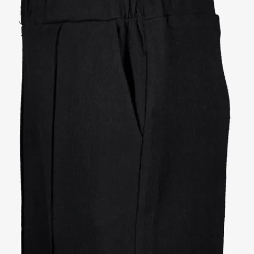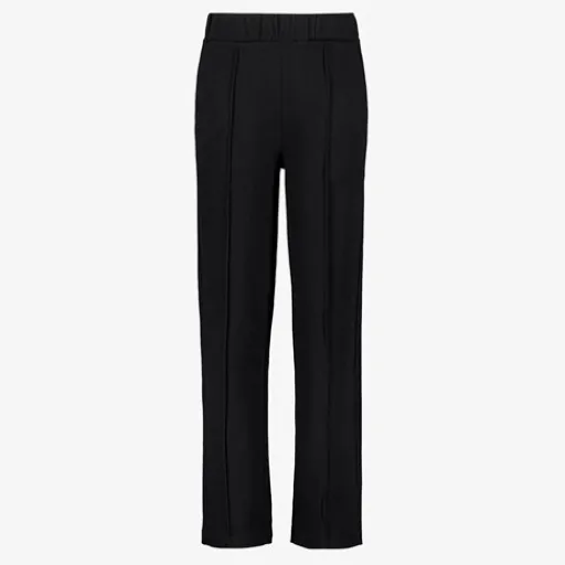 Zwarte wide leg broek voor meiden. Voorzien van een elastische tailleband, twee steekzakken en een wijde pasvorm. Gemaakt 57% katoen, 42% polyester en 1% elastaan