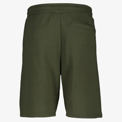 Groene sweatshort voor heren van Unsigned. Voorzien van een elastische tailleband, aantrekkoordjes en zakken met ritsen. De korte broek is gemaakt van 60% katoen en 40% polyester.
