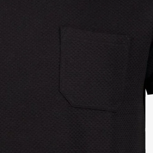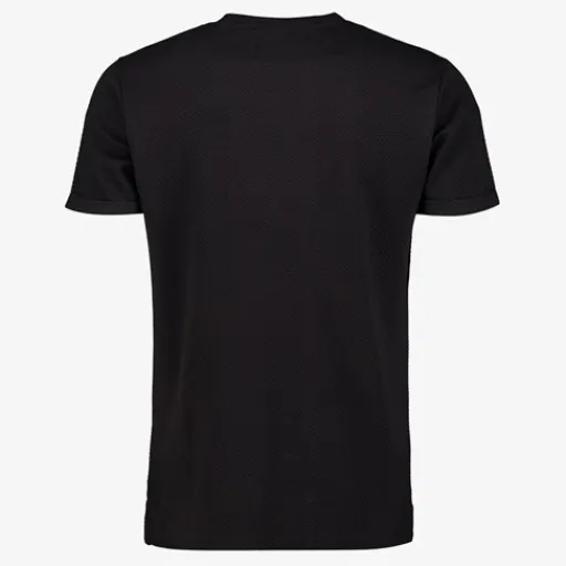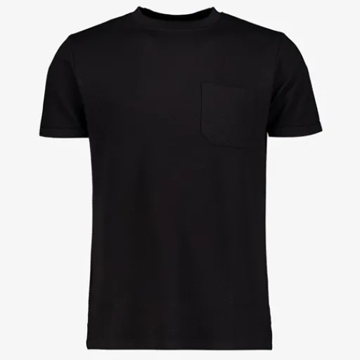 Een perfecte basic voor het voorjaar en de zomer: een zwart T-shirt voor heren! Dit T-shirt is wat dikker qua stof en heeft een subtiele structuur. Het zwarte heren T-shirt is gemaakt van 85% katoen en 15% elastaan.