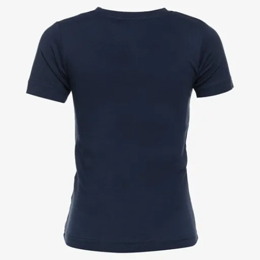 Donkerblauw basic T-shirt voor jongens. Voorzien van korte mouwen en een hoge, ronde hals. Het T-shirt heeft een comfortabele pasvorm en is gemaakt van 100% katoen.