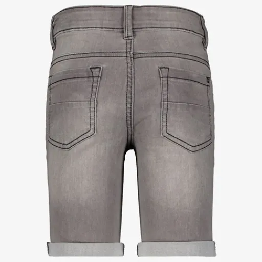 Grijze denim short voor jongens. Voorzien van een knoop- en ritssluiting, riemlusjes in de boord en twee voor- en achterzakken. De korte spijkerbroek heeft een omslag bij de broekspijpen en is gemaakt van 72% katoen, 26% polyester en 2% elastaan.ΒΆΒΆ