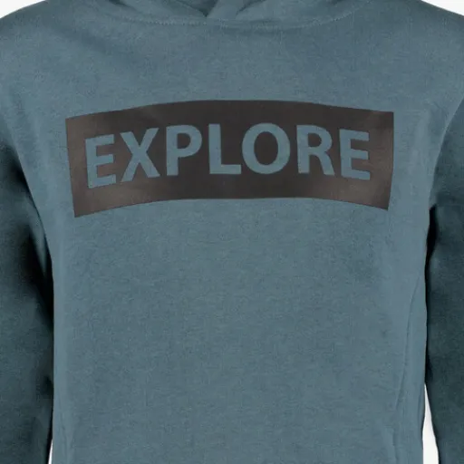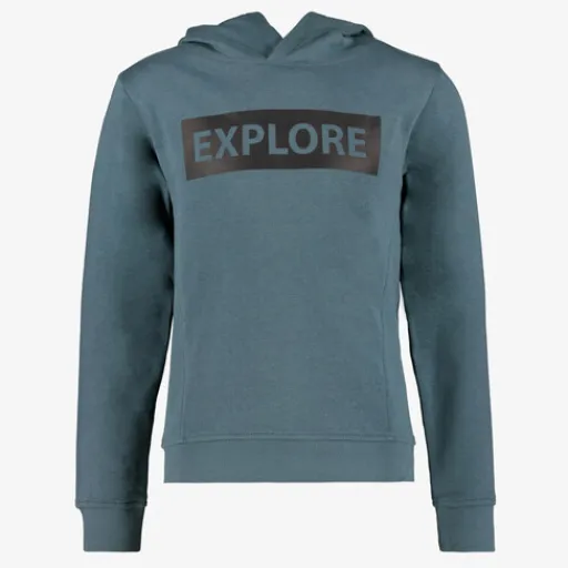 Blauwe hoodie voor jongens van Unsigend. Voorzien van een capuchon en lange mouwen met elastische boorden. De hoodie heeft een opdruk op de borst en is gemaakt van 100% katoen.