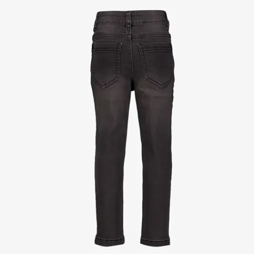 Zwarte jeans voor jongens uit de Unsigned collectie. Voorzien van een knoop- en ritssluiting en riemlusjes in de boord. De jeans heeft een slim fit pasvorm, twee voorzakken en twee achterzakken. Dit artikel is gemaakt met 77% biologisch katoen, 22% polyester en 1% elastaan.
