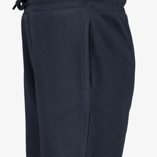 Donkerblauwe pique short voor jongens van Unsigned. Voorzien van een elastische tailleband met aantrekkoordjes en twee steekzakken. De korte broek is gemaakt van 100% katoen.