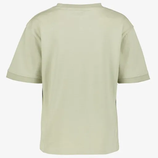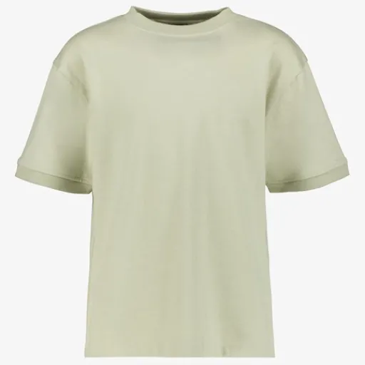 Beige T-shirt voor jongens van Unsigned. Voorzien van een ronde hals en korte mouwen. Gemaakt van 100% katoen.